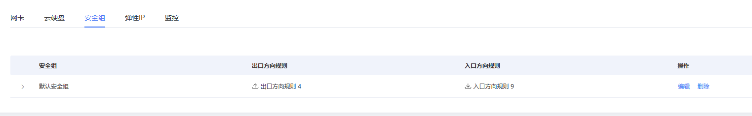 安装好之后记得给你的8888端口放行,点击你的云主机列表,安全组策略的默认安全组添加入口和出口的规则。